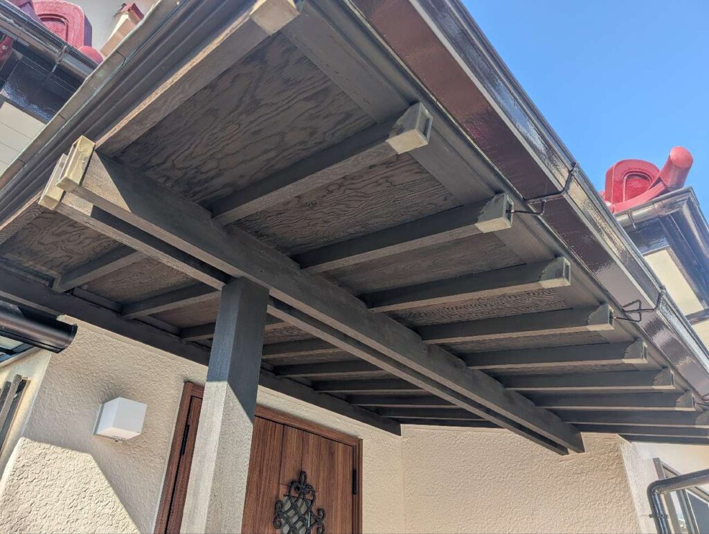 雨戸や戸袋、樋も同じ色で塗装しました。