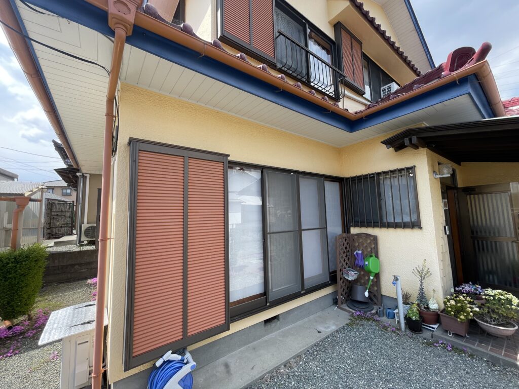 - 外壁塗装 漆喰 付帯部分の塗装 雨戸塗装